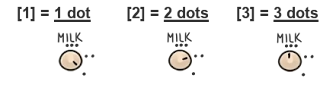 Você pode clicar nos três botões no topo (pressão, leite e temperatura) para girá-los. Ajuste cada um conforme os números do pedido.
