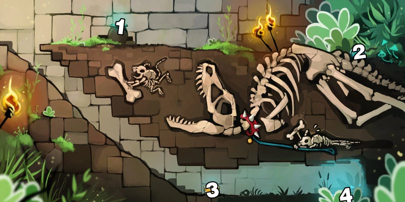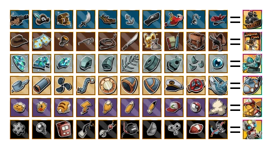 Passe o mouse sobre os fragmentos de relíquia para saber a sua numeração.